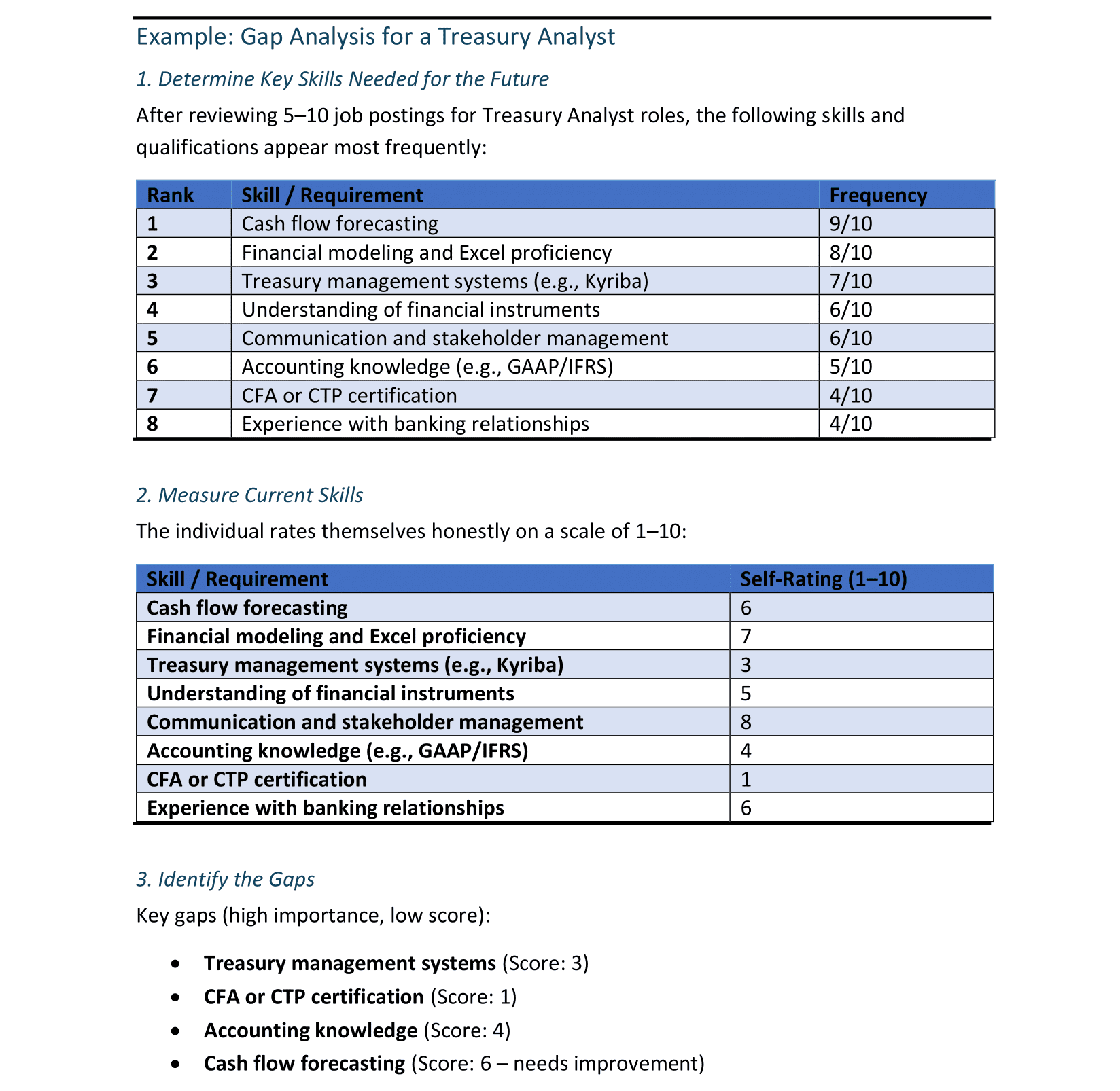 A Gap Analysis helps you identify what knowledge and skills you need to acquire or improve in order to fill the gap between you and your dream job.